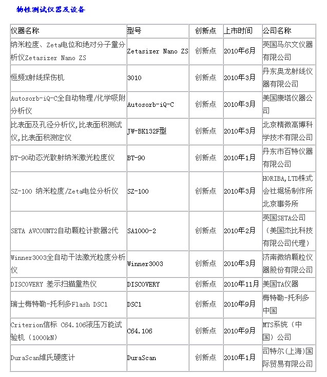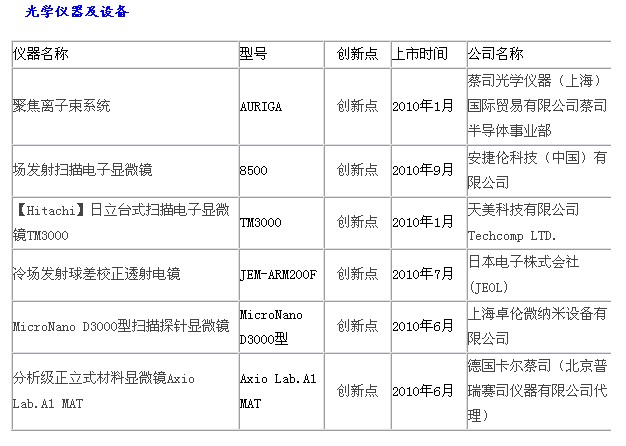 2010科學(xué)儀器優(yōu)秀新品入圍名單:物性測試儀器、光學(xué)儀器