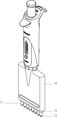 11.吸頭退除桿12.吸頭圓錐13.安全圓錐過濾器14.吸頭圓錐外殼   15.吸頭退除架