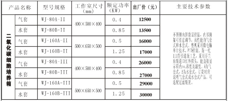 工作室尺寸:400×400×500; 加熱方式:水套式; 二氧化碳控制方式:配比式; 二氧化碳控制范圍:0~20%; 溫控范圍,溫度波動度:室溫+5~65℃,±0.5℃; 其他參數(shù):微電腦智能控溫儀PID控制,數(shù)字顯示:雙門結(jié)構(gòu);箱內(nèi)裝有紫外線殺菌燈,可定期對箱內(nèi)進(jìn)行紫外線消毒;獨(dú)立設(shè)置的門加熱系統(tǒng),能有效避免內(nèi)門玻璃的結(jié)露現(xiàn)象。二氧化碳濃度傳感器采用芬蘭原裝進(jìn)口紅外探頭;能直接顯示箱內(nèi)二氧化碳濃度,運(yùn)行可靠。